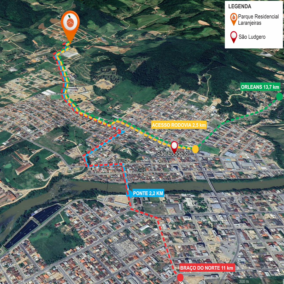 Localizado em São Ludgero, distante 5 minutos do centro, possui uma área de superior a 200mil m2. O loteamento foi projetado para que sua casa tenha uma insolação e ventilação privilegiada, valorizando o conforto e a paisagem do entorno com vista para toda São Ludgero.